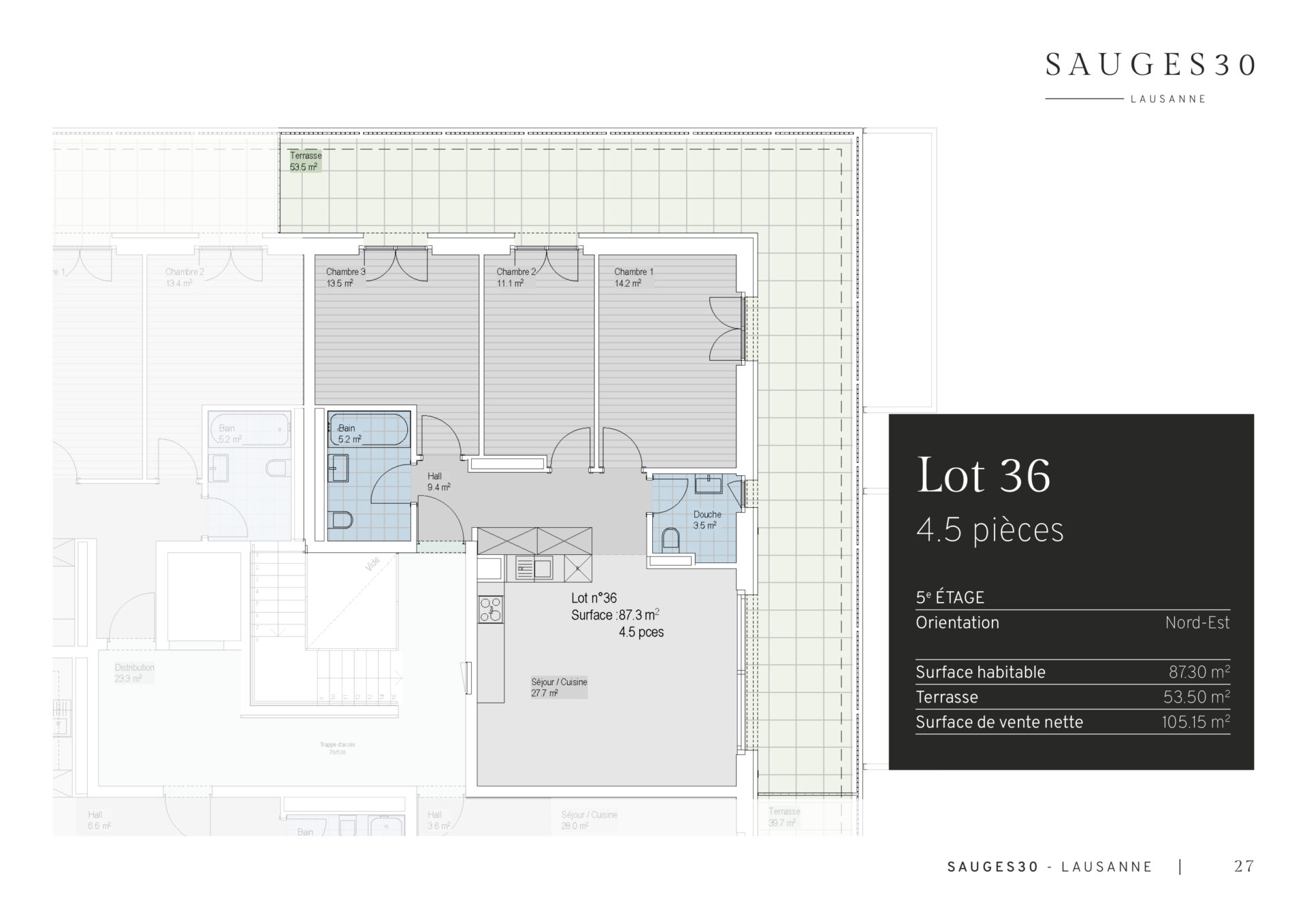 | 36 | 4.5 | 5ème | NE | 87.30 m2 | 1 | ||||||