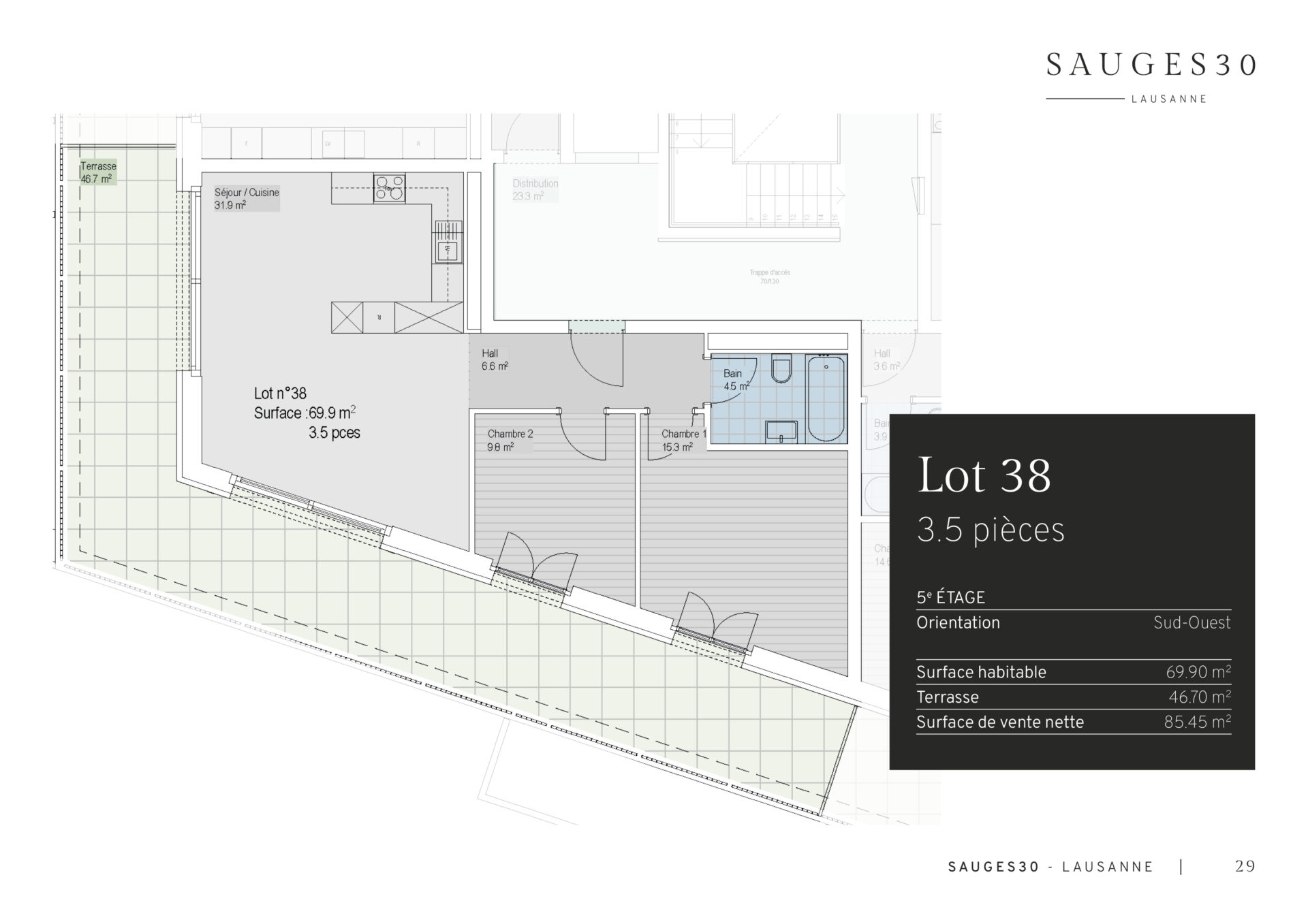 | 38 | 3.5 | 5ème | SO | 69.90 m2 | 1 | CHF 1'090'000 | |||||