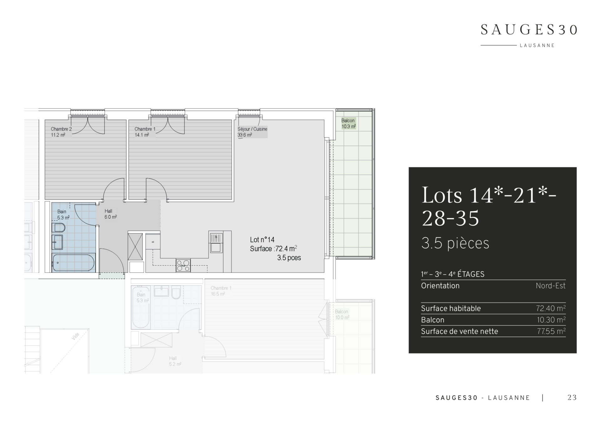 | 14 | 3.5 | 1er | NE | 72.40 m2 | - | ||||||