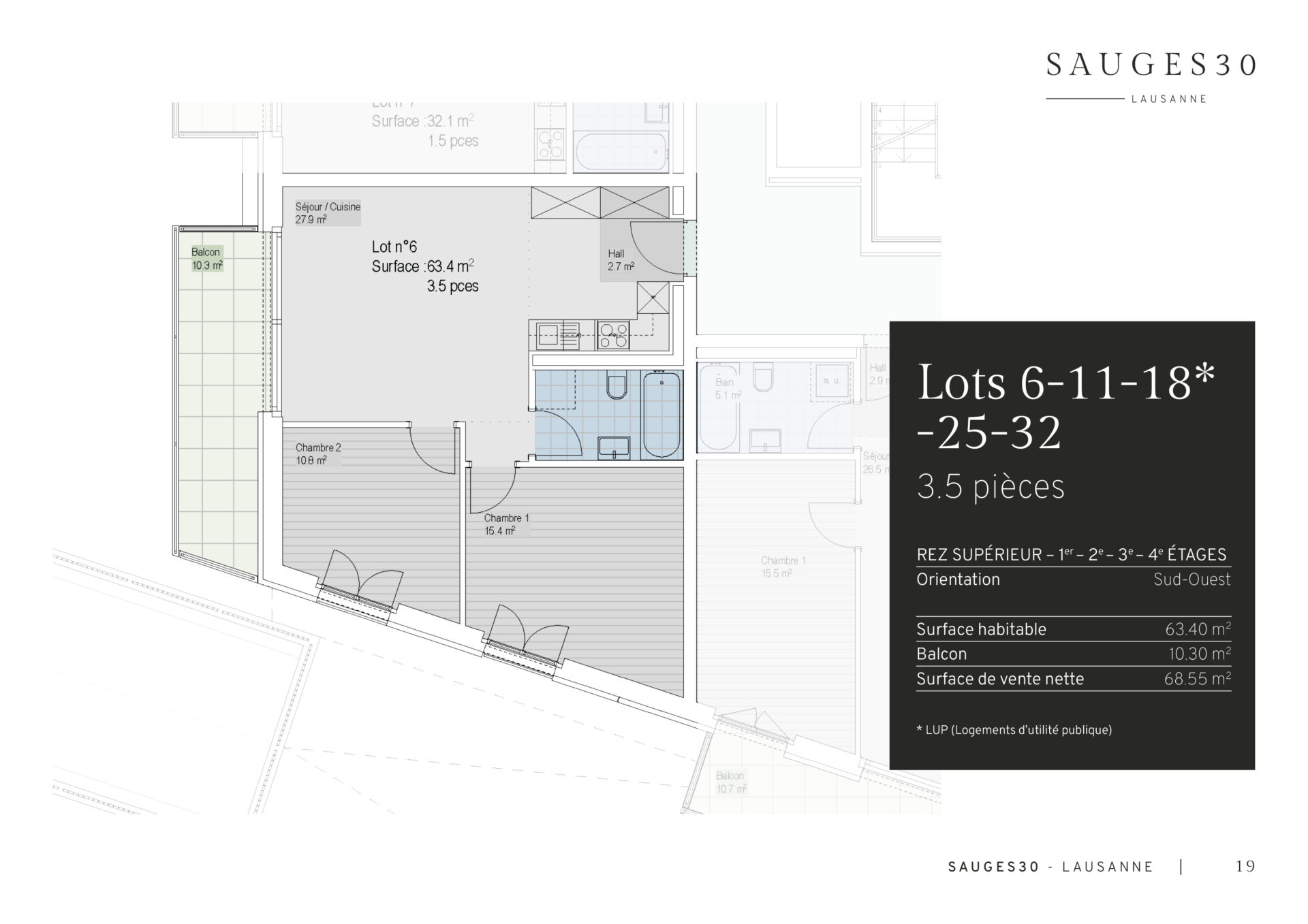| 11 | 3.5 | 1er | SO | 63.40 m2 | 1 | ||||||